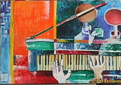 I tend to reuse canvas if I dont like the first or second painting then I just paint over it. This time I let the first painting show through. That was the beginning of this idea of letting every thing show. Recording the history of the process as well as creating an image.
