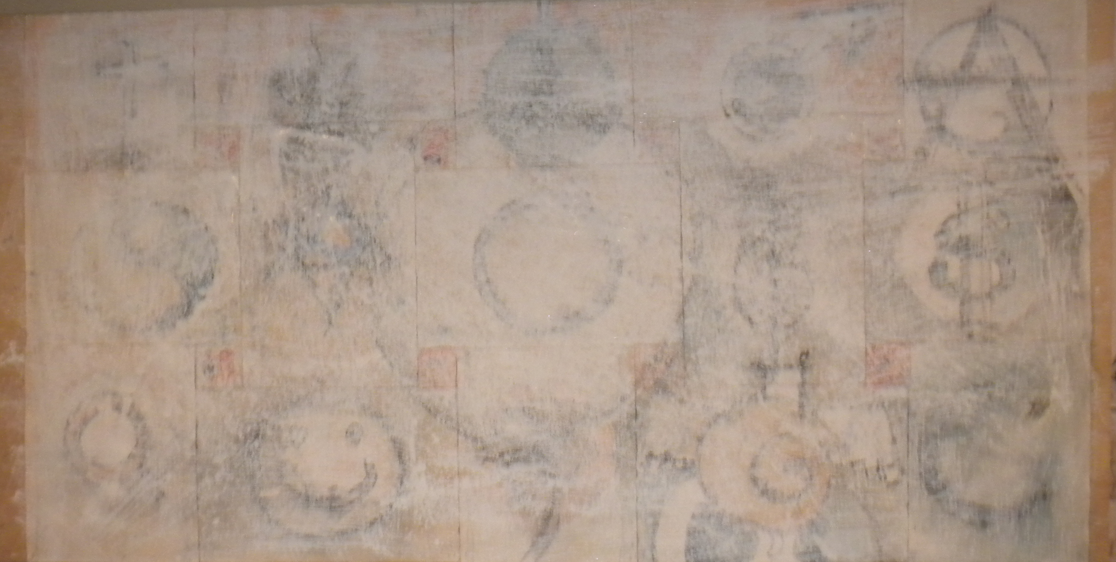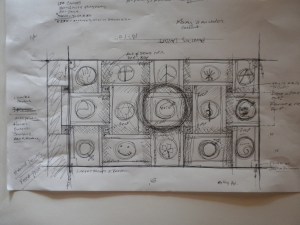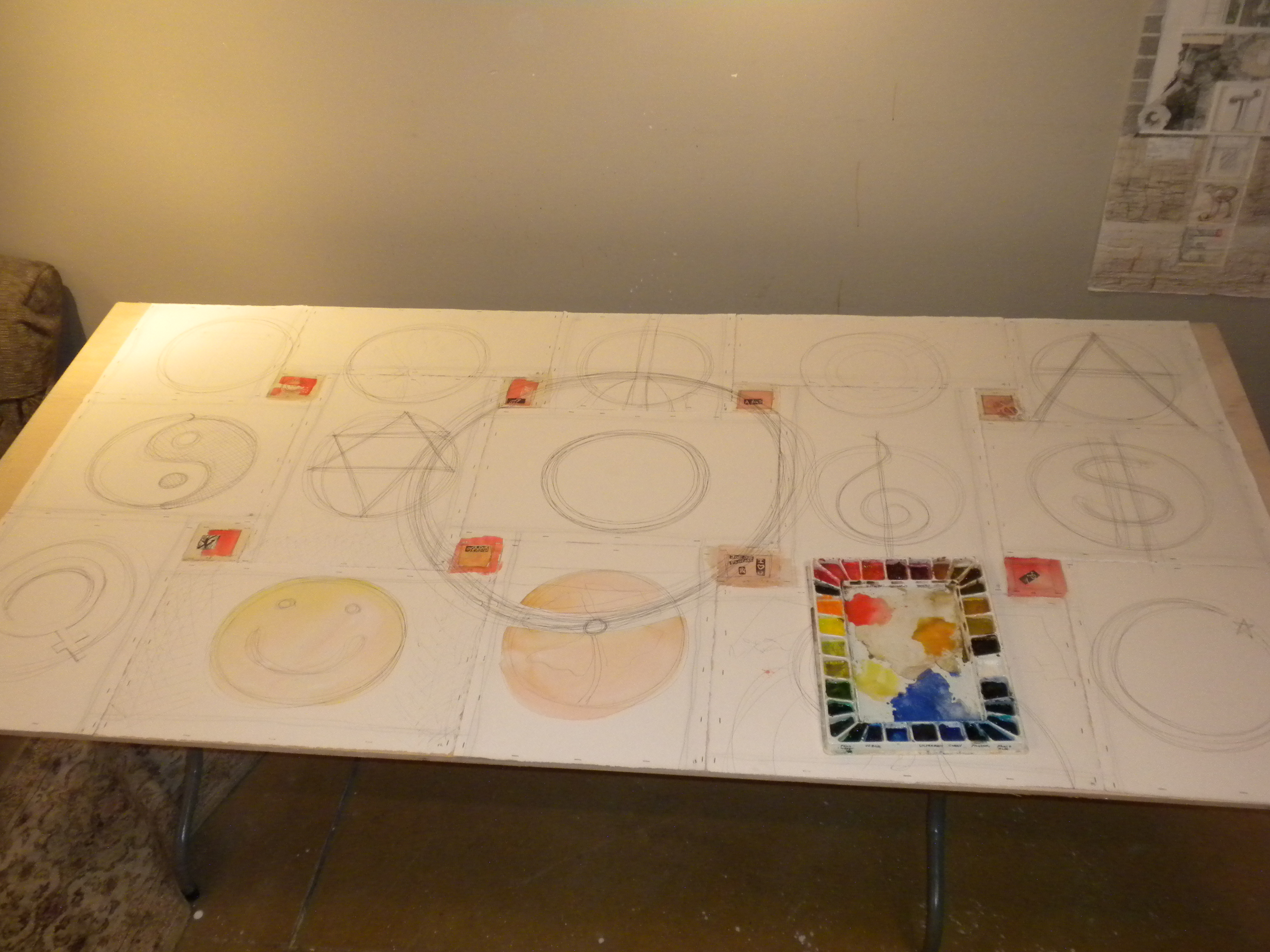 Next the painting is divided into a grid of common symbols commonly seen around Boulder. This is used for the layout of the underpainting.