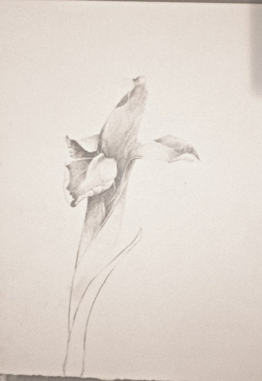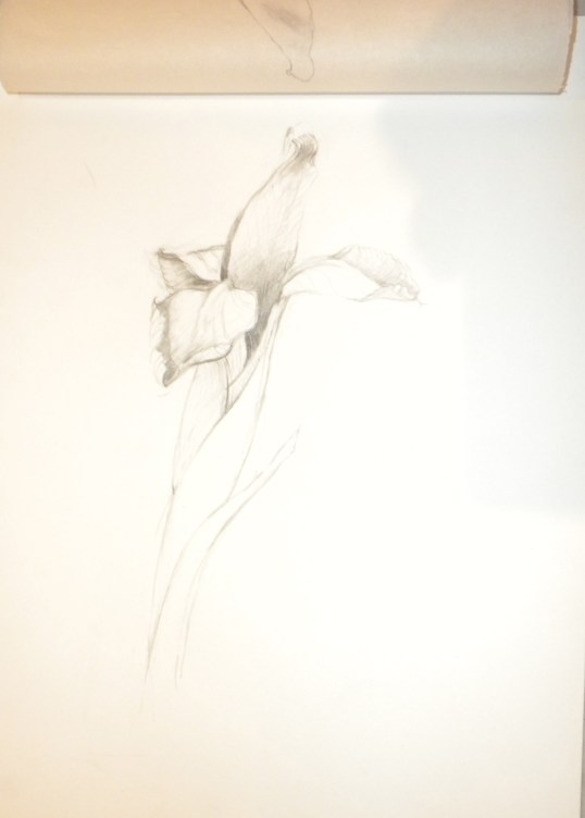 I can see that there is an unlimited amount to know and direct applications to Architecture. Frank Lloyd Wright wrote about this, of course. But there is an ocean of difference  between reading about one persons distillation of an experience- and experiencing it first hand for yourself. The class had a sense of community. I love seeing other students work and learning that way. At the Botanic Gardens you get the sense that art, culture and creativity have value. It was also just wonderful to hang out in the garden at lunch and breathe. Below is a sketch of an iris:
