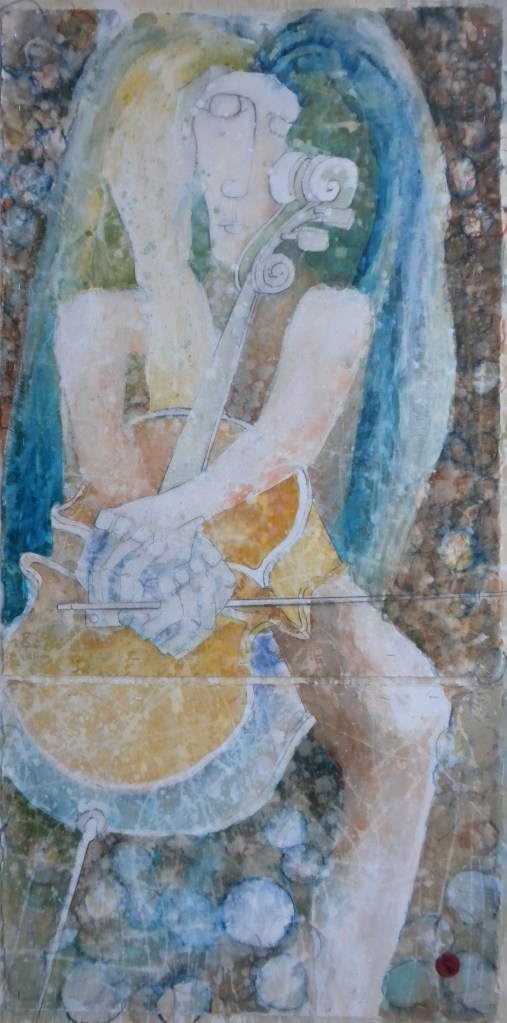Cello is another installment in the bluegrass series. Like most of the other paintings it relies on a mixture of control and abandon.