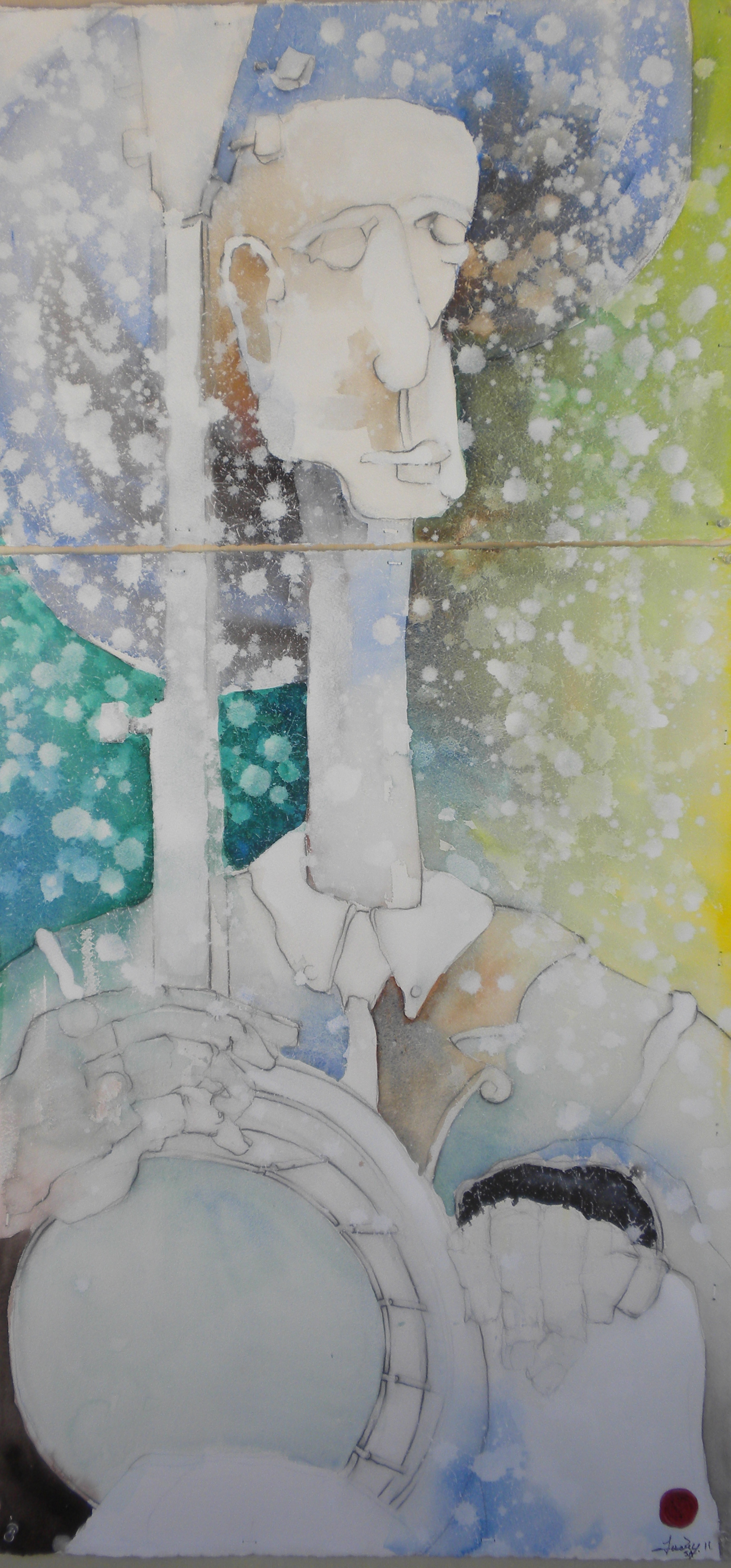 This is one of my favorite formats. The size is 24″ x 48″ . It equals one and one half sheets of watercolor paper. I like it in both the portrait and landscape orientations. Years ago I started streaching my own canvas because you cannot buy pre stretch canvas (or watercolor paper) in that aspect ratio.